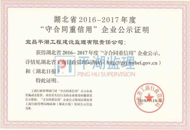 湖北省第十四屆(2016-2017年度)守合同重信用企業