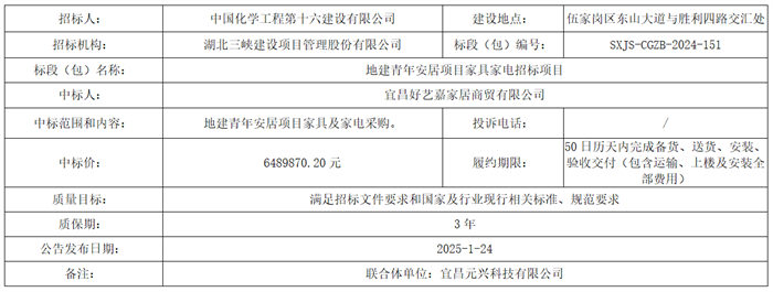 地建青年安居項目家具家電招標項目中標結果公告