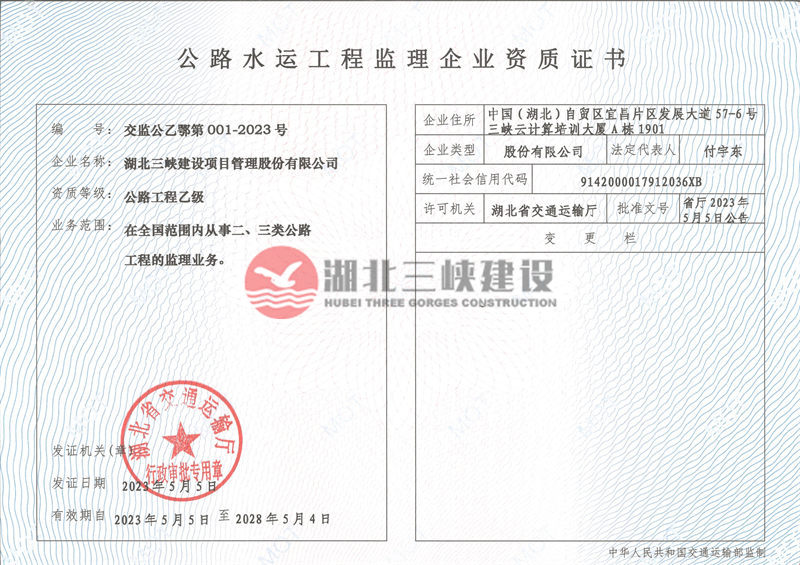 公路工程監理企業資質證書