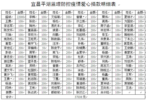 突發的新型冠狀病毒感染肺炎疫情牽動著黨中央和全國人民的心,全國各地已啟動突發公共衛生事件Ⅰ級響應,各部門、各行業積極行動,投身到抗擊疫情的第一線。團結一心、眾志成城,堅定不移打贏這場無硝煙的抗疫之戰,已全面進入決戰時段。 春風楊柳萬千條,六億神州盡舜堯”,抗擊疫情平湖有責。我們雖不是白衣天使,不能做到義無反顧奔赴前線抗擊疫情,但我們能夠情系前線,獻出我們的一份愛。公司黨支部號召全體員工弘揚守望相助精神,積極行動捐款援助,用善舉彰顯平湖監理人的責任擔當,同呼吸、共命運、心連心,為決勝疫情做出積極的貢獻! 由于疫情嚴重,公司取消節后面簽報到,用愛國捐款的方式,在堅定支持抗擊疫情中報到。以信念備戰,用愛心參與,為勝利助力! 2月8日我公司黨支部發起的愛心捐款,短短3個小時,108位同事踴躍參與,奉獻善款17036元。加上公司總經理1月26日捐款10000元、1月28日捐款10000元,我公司參與抗疫共計捐助37036元。愛心還將持續。