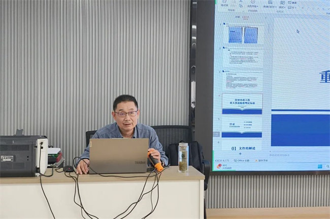 公司技術負責人謝忠安通過條文與案例分析相結合的方式,對《房屋市政工程重大事故判定標準》進行了詳細解讀,有效增強了全體與會人員“風險就是隱患,隱患就是事故”的責任意識和重大隱患判定的識別和處置能力。