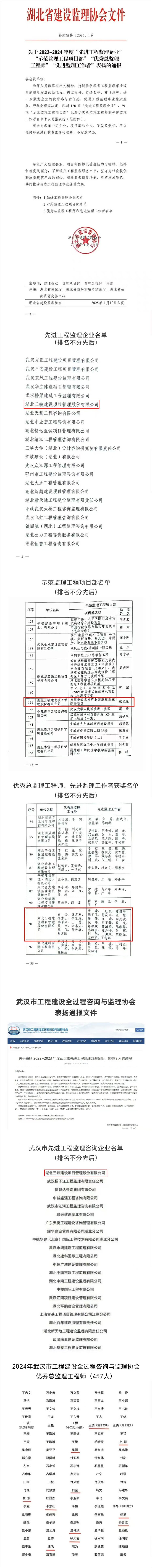 近日,在湖北省建設(shè)監(jiān)理協(xié)會發(fā)布的2023-2024年度省級“先進(jìn)工程監(jiān)理企業(yè)”、“示范監(jiān)理工程項目部”、“優(yōu)秀總監(jiān)理工程師”、“先進(jìn)監(jiān)理工作者”和武漢市工程建設(shè)全過程咨詢與監(jiān)理協(xié)會發(fā)布的2022-2023年度武漢市“先進(jìn)工程監(jiān)理咨詢企業(yè)”、“優(yōu)秀個人”的評選結(jié)果公告中,湖北三峽建設(shè)項目管理股份有限公司再獲殊榮。 此次評選結(jié)果,湖北三峽建設(shè)項目管理股份有限公司榮獲2023-2024年度省級“先進(jìn)工程監(jiān)理企業(yè)”、2022-2023年度武漢市“先進(jìn)工程監(jiān)理咨詢企業(yè)”榮譽(yù)稱號;點(diǎn)軍橋邊農(nóng)卉產(chǎn)業(yè)園基礎(chǔ)設(shè)施配套項目監(jiān)理部榮獲“省級示范監(jiān)理工程項目部”榮譽(yù)稱號;謝忠安、秦晉江、白全、李東山、李世紅、王勇、吳剛、熊飛、徐天喜、趙志剛榮獲“省級優(yōu)秀總監(jiān)理工程師”榮譽(yù)稱號;白全、杜波、熊飛、徐天喜、夏忠斌、秦晉江、張瑜、李東山、文瑞、王勇、吳剛榮獲“武漢市優(yōu)秀總監(jiān)理工程師”榮譽(yù)稱號;鮑宇飛、陳恭銘、陳俊平、陳澤峰、董亮、都啟斌、范曉光、黃清橋、荊凱、李興波、倪瑋、孫嶺洲、汪慧、王旺民、王勇政、王志鵬、文瑞、肖王鋒、張輝、張偉、張瑜、左開亮榮獲“先進(jìn)監(jiān)理工作者”榮譽(yù)稱號。