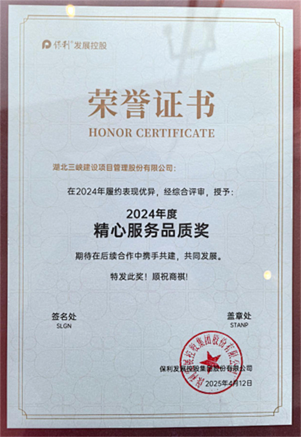 | ——湖北三峽建設項目管理股份有限公司榮獲保利發展控股集團“2024年度精心服務品質獎” |