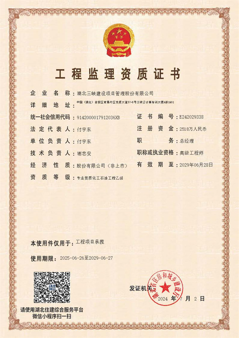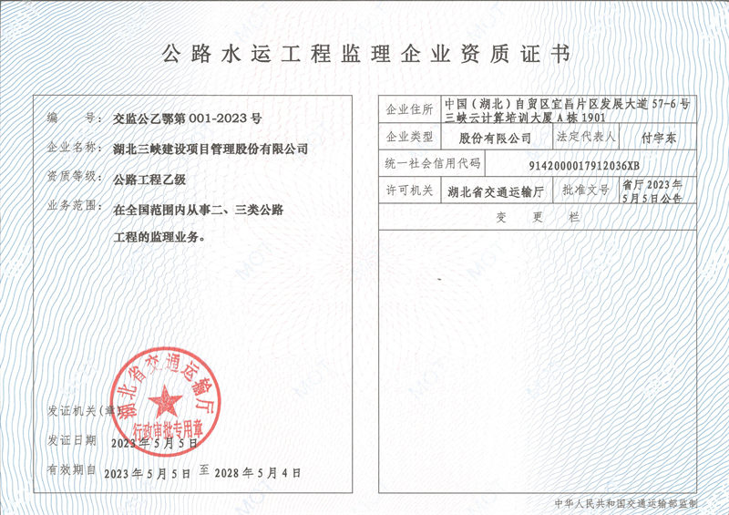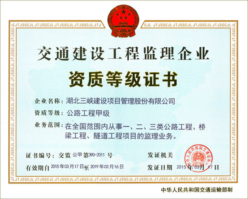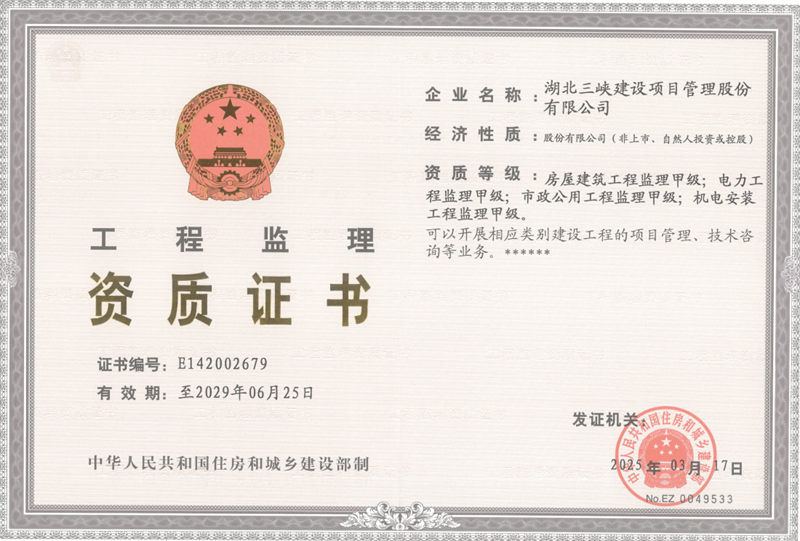 湖北三峽建設(shè)項目管理股份有限公司立足湖北宜昌,業(yè)務(wù)范圍遍及新疆、云南、福建、廣東、安徽等省市,為投資人提供了誠信、科學(xué)、規(guī)范的項目管理咨詢服務(wù)。公司注重以人為本,匯聚了專業(yè)、敬業(yè)、廉潔的人才隊伍,擁有全國注冊監(jiān)理工程師、一級造價師、一級建造師、咨詢工程師(投資)等注冊執(zhí)業(yè)人員120余人(其中高級工程師30余人);公司致力以標(biāo)準(zhǔn)為基,形成了履責(zé)行為規(guī)范和風(fēng)險管理機制,質(zhì)量管理、環(huán)境管理、職業(yè)健康安全管理獲ISO9001、ISO14001、 ISO 45001管理體系認(rèn)證,公司研發(fā)的信息管理系統(tǒng)獲國家版權(quán)局計算機軟件著作權(quán)證;公司追求以價值為魂,鑄就了全過程控制、全要素服務(wù)的工作作風(fēng),所承擔(dān)的項目獲國家級建設(shè)工程質(zhì)量安全獎9項、省級建設(shè)工程質(zhì)量安全獎300余項,市級建設(shè)工程質(zhì)量安全獎500余項,合同履約率100%。