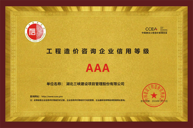 近四十年以來,三峽建設(shè)人恪守“科學(xué)、公正、誠信、開拓”的經(jīng)營宗旨,秉持“通過過程控制實現(xiàn)投資價值最優(yōu)化”的增值理念,踐行“讓業(yè)主滿意、為社會盡責(zé)、使自己安心”服務(wù)原則,著力打造“具有增值服務(wù)價值和社會公信力”的工程建設(shè)全過程管理咨詢企業(yè),努力為客戶提供更精準(zhǔn)的技術(shù)管理服務(wù),努力為員工創(chuàng)造更美好的人生平臺,努力為社會回饋更有益的正能量,廣泛得到項目業(yè)主和建設(shè)行政管理部門的高度信任和支持。公司連續(xù)連續(xù)二十年獲湖北省先進(jìn)監(jiān)理企業(yè)及湖北省守合同重信用企業(yè),被中國建設(shè)監(jiān)理協(xié)會、中國建設(shè)工程造價管理協(xié)會評價為“AAA”信用等級,被湖北省招投標(biāo)協(xié)會評價為“AAA”信用等級,被湖北省認(rèn)定為高新技術(shù)企業(yè),公司黨支部被中共宜昌市西陵區(qū)委授予優(yōu)秀基層黨組織榮譽稱號。