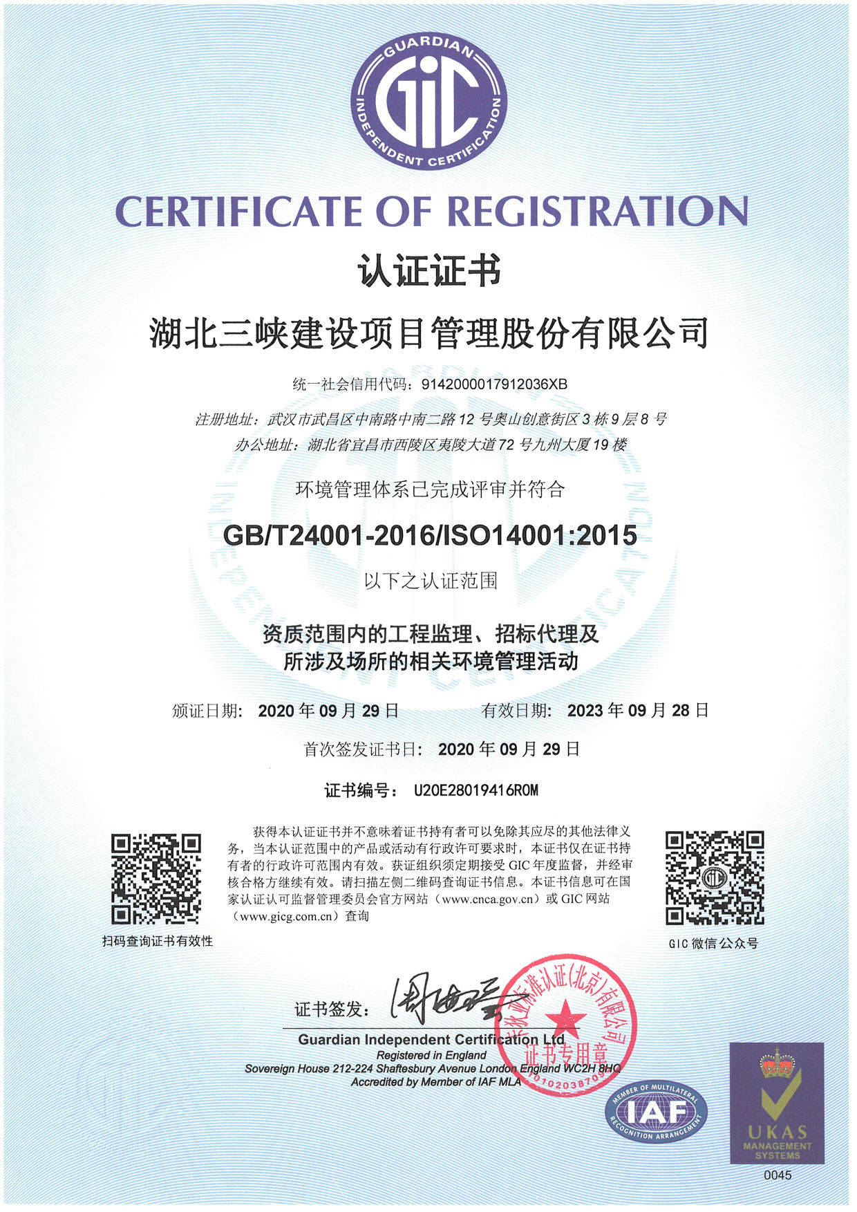 湖北三峽建設項目管理股份有限公司立足湖北宜昌,業務范圍遍及新疆、云南、福建、廣東等省市,為投資人提供了誠信、科學、公正的項目管理咨詢服務。公司注重以人為本,匯聚了專業、敬業、廉潔的人才隊伍,擁有全國注冊監理工程師120余人、一級造價師20余人、一級建造師30余人、咨詢工程師(投資)10余人;公司致力以標準為證,公司研發的信息管理系統獲國家版權局計算機軟件著作權證;公司追求以價值為魂,鑄就了全過程控制、全要素服務的工作作風,所承擔的項目獲國家級建基,形成了履責行為規范和風險管理機制,質量管理、環境管理、職業健康安全管理獲ISO9001、ISO14001、 ISO 45001管理體系認設工程質量安全獎7項、省級建設工程質量安全獎100余項,市級建設工程質量安全獎300余項,合同履約率100%,項目優良率42%。