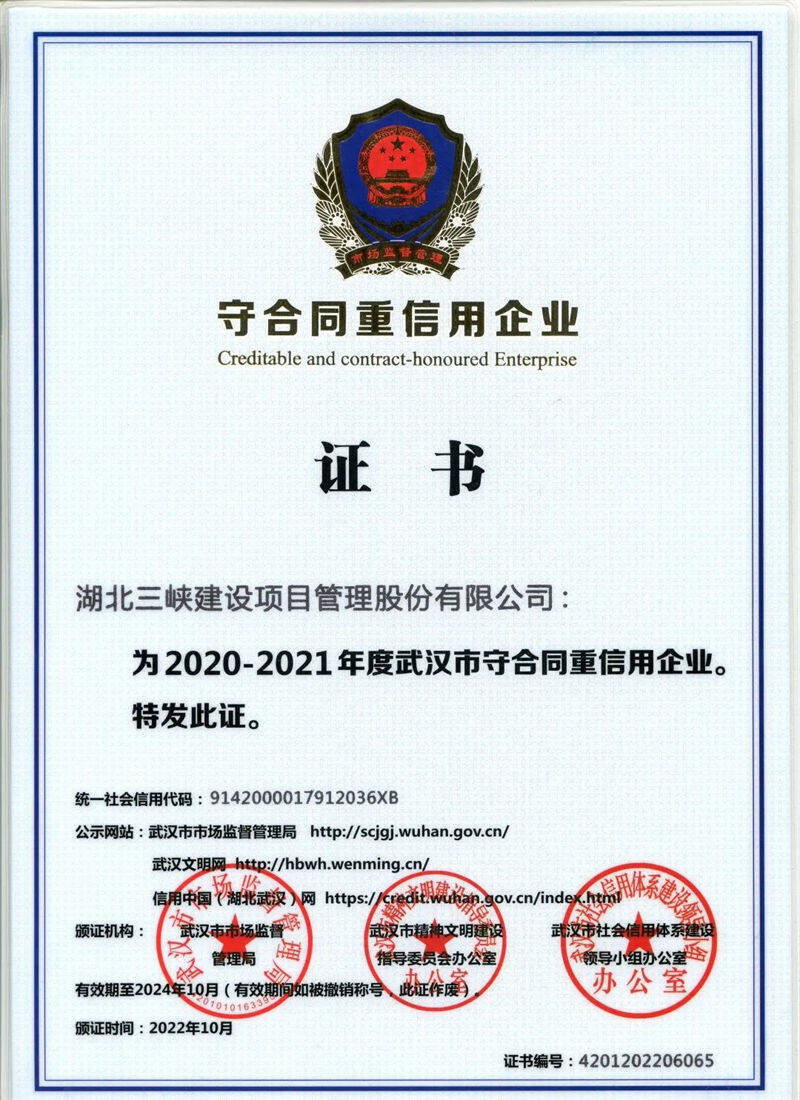 近四十年以來,三峽建設人恪守“科學、公正、誠信、開拓”的經營宗旨,秉持“通過過程控制實現投資價值最優化”的增值理念,踐行“讓業主滿意、為社會盡責、使自己安心”服務原則,著力“打造具有增值服務價值和社會公信力的工程建設管理咨詢企業“,努力為客戶提供更精準的技術管理服務,努力為員工創造更美好的人生平臺,努力為社會回饋更有益的正能量,廣泛得到項目業主和建設行政管理部門的高度信任和支持。公司連續連續十六年獲湖北省先進監理企業、連續十七年獲湖北省守合同重信用企業,被中國建設工程造價管理協會信用評價為“AAA”等級,被中共宜昌市西陵區委授予優秀基層黨組織榮譽稱號。